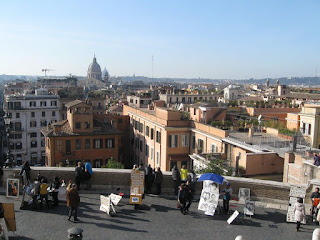 While atop the Spanish Steps, the view was spectacular. I felt like I could see all over Rome. The Sistine Chapel rose up brilliantly in a haze, far off in the distance. It was striking. Unfortunately, it is very difficult to capture the experience with a camera. Of course, I tried.