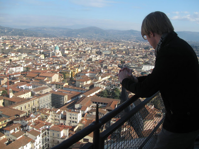 I got a good start on the book I borrowed from Adam, Hemmingway's The Sun Also Rises, and we arrived in Florence shortly thereafter. It was cloudy and looked like it might rain.